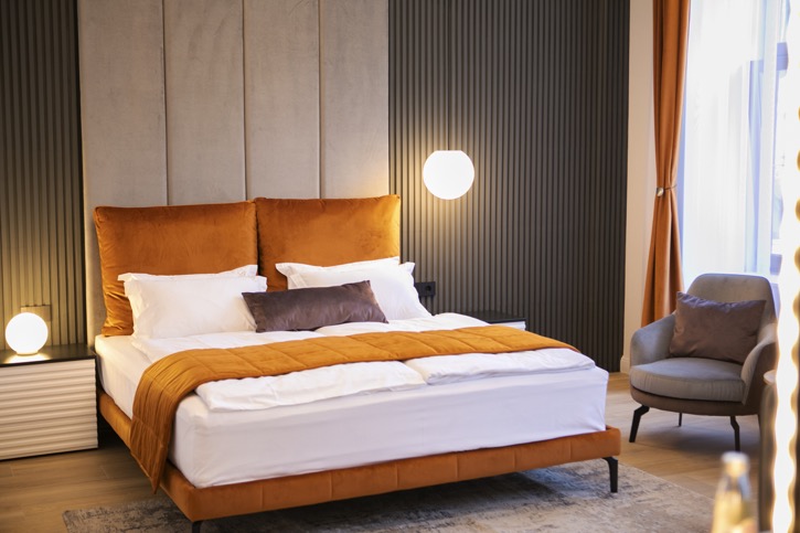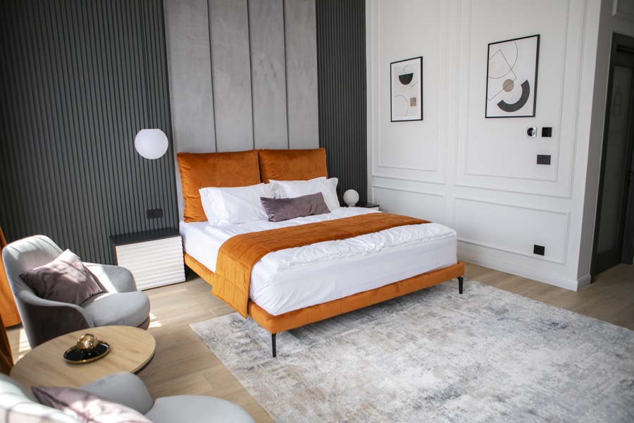 Pentru ca sejurul să fie memorabil și odihnitor, dormitorul este dotat cu pat matrimonial Boxspring cu saltea premium și topper. Pentru confortul maxim al musafirilor noștri, camera dispune de perne de diferite mărimi și densități și draperie blackout.