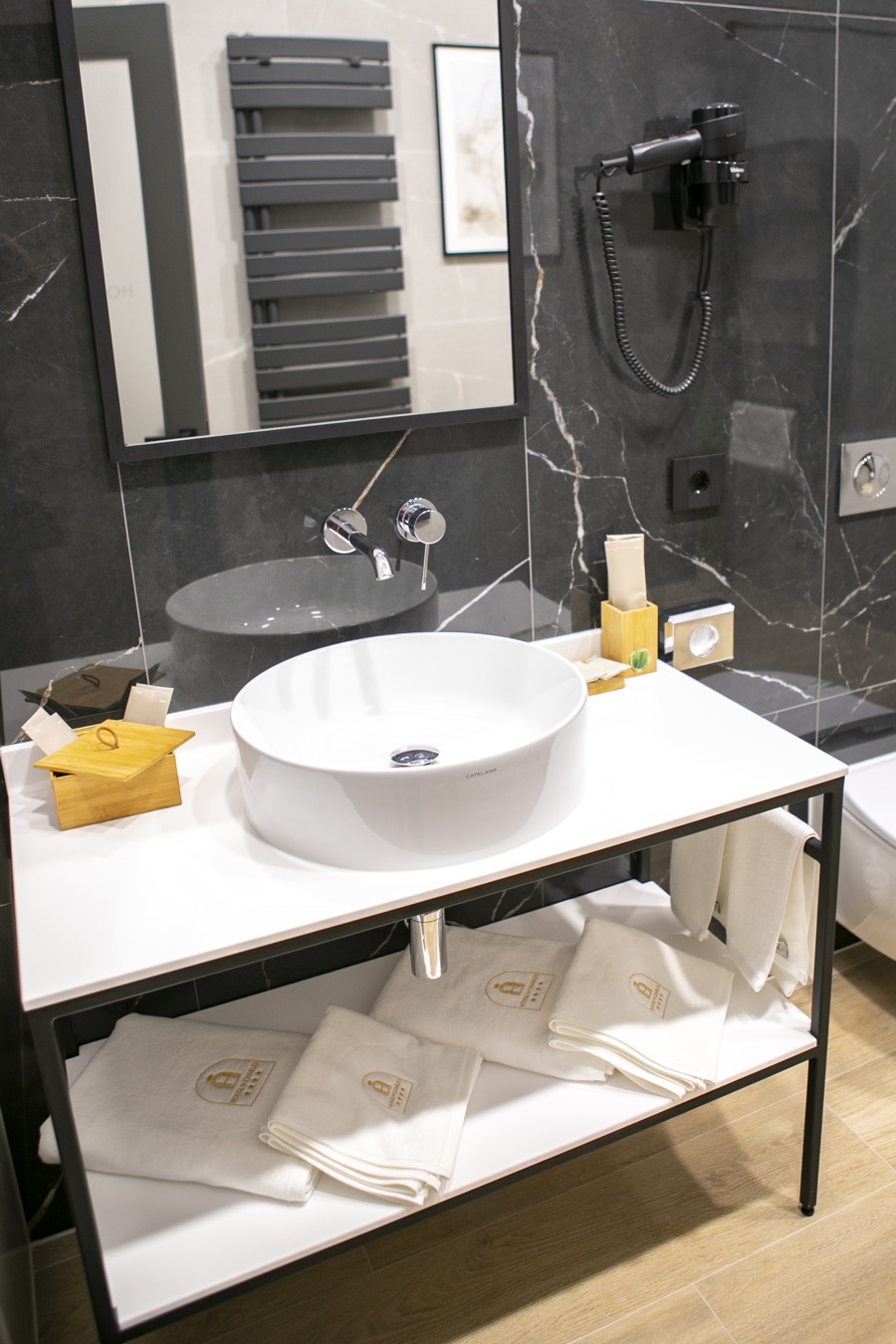 Baia este dotată cu cabină de duș, uscător de păr, articole de îngrijire personală, oglindă pentru machiaj, încălzire în pardoseala, calorifer port prosop, boxe Yamaha.